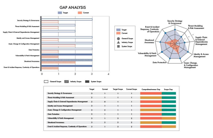 Visualization of gap analysis between the current and security maturity target.