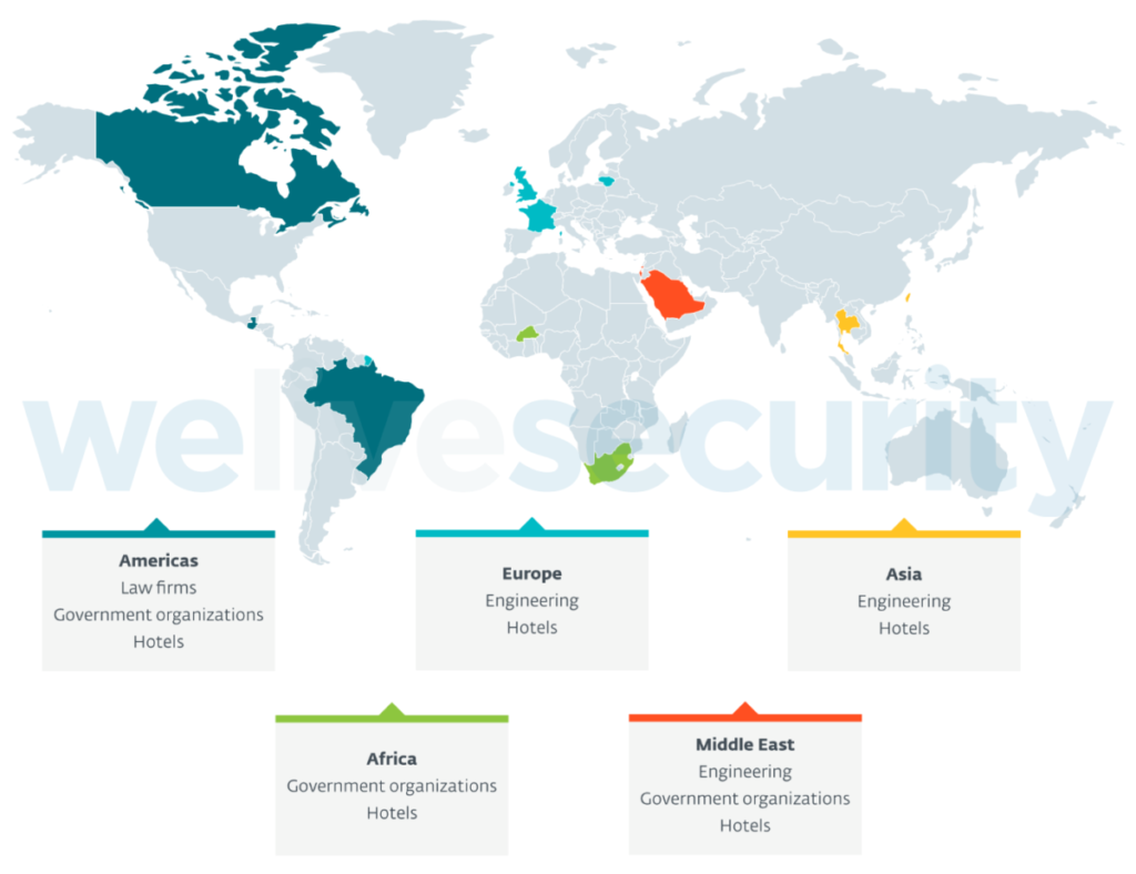 Kaspersky has observed an overlap in one server that was mentioned as used by FamousSparrow to deliver SparrowDoor and as a staging server used by Chinese-speaking threat actor GhostEmperor, possibly around the same time in July 2020. According to Kaspersky telemetry, GhostEmperor’s targets include government entities and telecommunication companies in South East Asia, with multiple high-profile entities targeted in Malaysia, Thailand, Vietnam and Indonesia, and additional victims of a similar nature in countries such as Egypt, Ethiopia and Afghanistan.