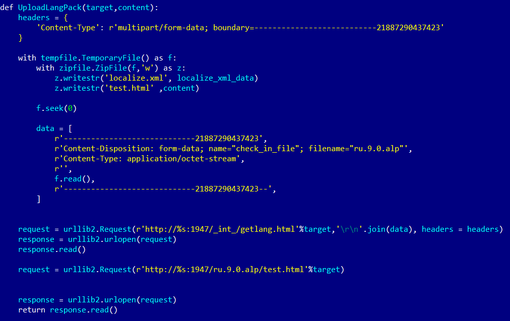 First of all, we looked at the localization function – the user could download language packs consisting of two files, one of which was localize.xml. The second file, in HTML format, had parameters, one of which turned out to be vulnerable to buffer overflow. It would have been a simple vulnerability, if it wasn’t for one curious detail: although, as mentioned above, a protector was used, for some reason the developers did not use any of the classical mechanisms providing protection from such binary vulnerabilities (such as Stack Canary, Stack Cookie, ASLR, etc.). As a result, a simple buffer overflow could allow an attacker to execute arbitrary code on the remote system.