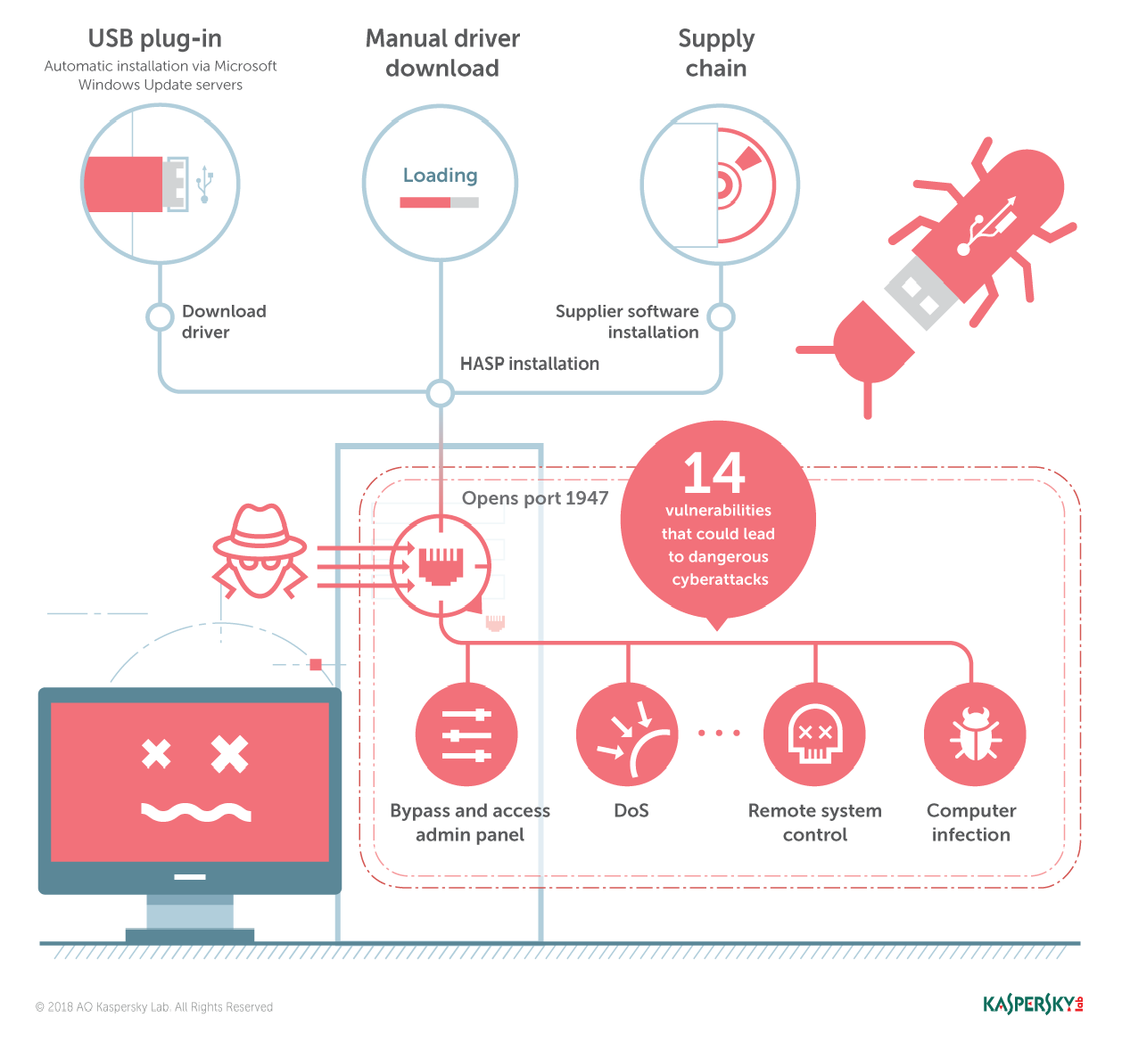 While performing various penetration tests, Kaspersky Lab ICS CERT experts repeatedly encountered the same service on the computers of customers who used software and hardware solutions by different industrial vendors. The experts didn’t attach much importance to it until it was found to be vulnerable. The service was hasplms.exe, which is part of the SafeNet Sentinel hardware-based solution by Gemalto. The solution provides license control for software used by customers and is widely used in ICS and IT systems.