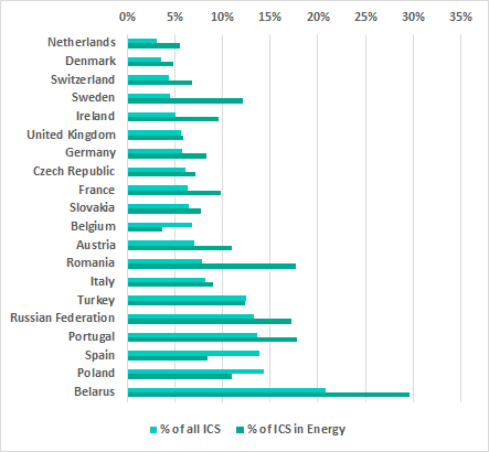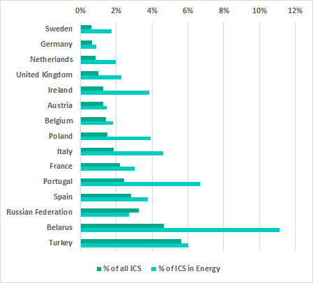 Differences in the threat landscapes for all ICS computers and ICS computers in the energy sector become more pronounced when analyzing data for different countries.