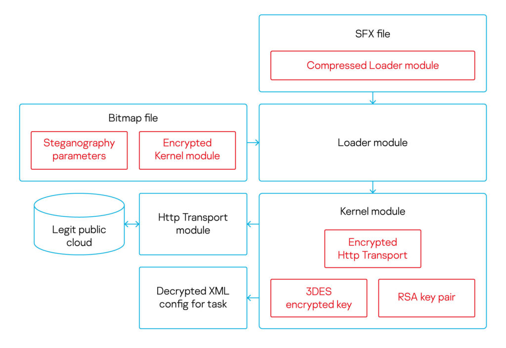 LoaderThis anti-detection module is in charge of custom steganography, kernel module decryption.