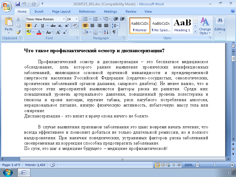 The document contains information on the population health assessment program and is not directly related to the subject of the phishing email (COVID-19), suggesting the attackers may not completely understand the meaning of the contents they used.