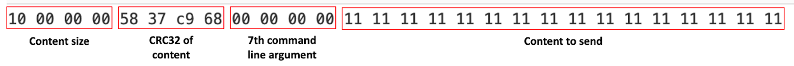 fpparameter contains the base64 encoded size, CRC32 value of content and file contents.