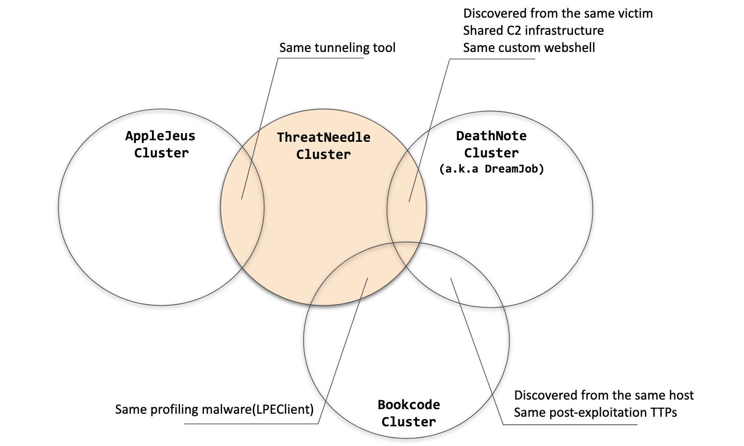 We have been tracking ThreatNeedle malware for more than two years and are highly confident that this malware cluster is attributed only to the Lazarus group. During this investigation, we were able to find connections to several clusters of the Lazarus group.