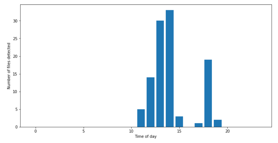 Most of the files identified in March were ‘test builds’. The developer removed parts of the malicious program’s code one after another, apparently trying to find out which parts of the code trigger detection by antivirus solutions.