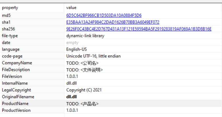 - Some malware samples contain comments in Chinese in executable file metadata.