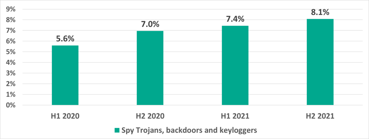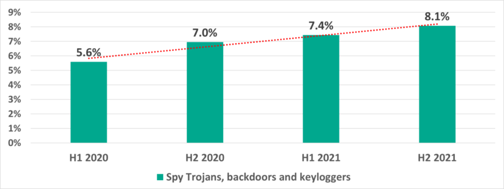 - Spyware – by a factor of 1.4 — from 5.6% to 8.1%.