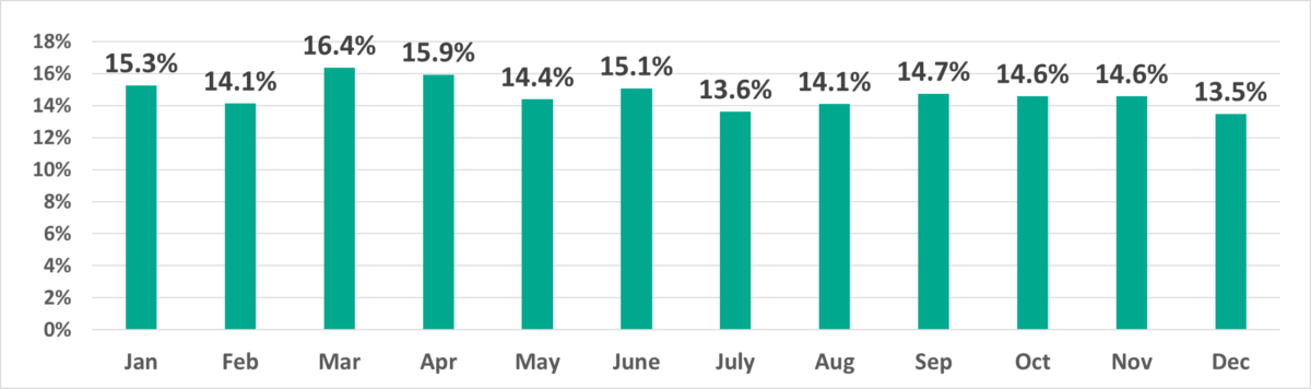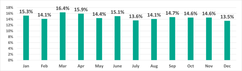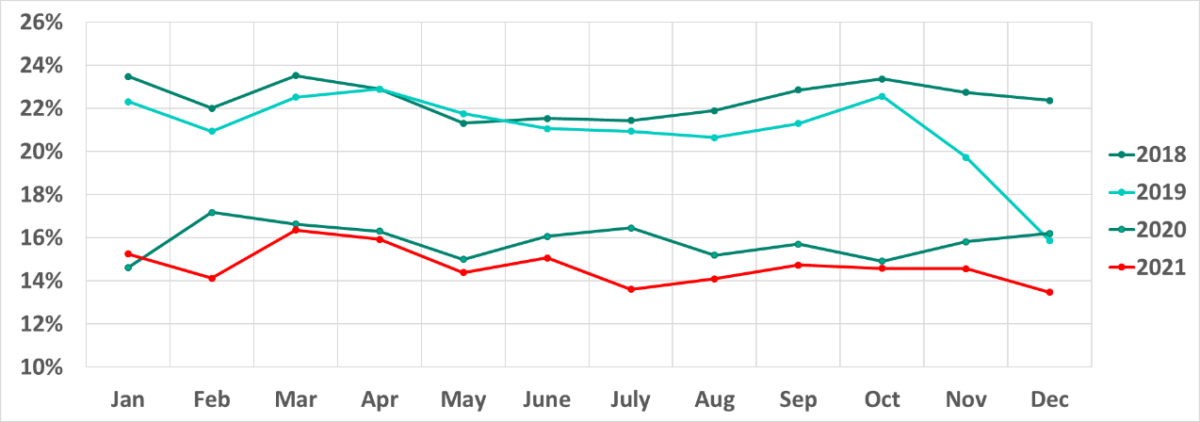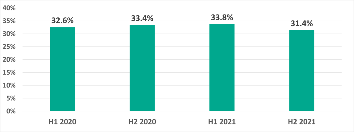 However, if the situation is examined by each 6 month period things look better: in H2 2021 this percentage decreased by 1.4 p.p. for the first time in 1.5 years.