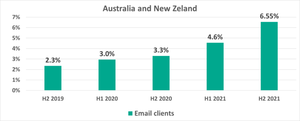 | Email clients | 3.5% | 3.7% | 4.2% |