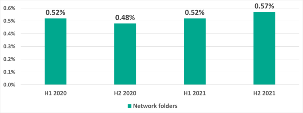 | Network folders | 0.52% | 0.57% | 0.75% |