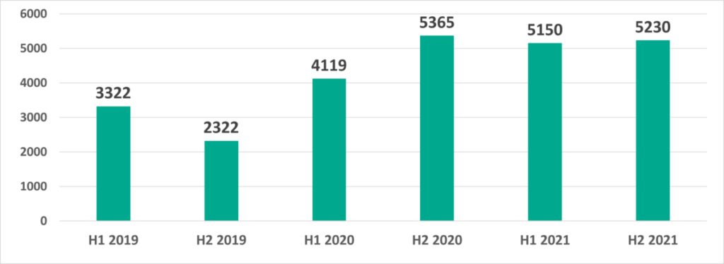 2021 is the second year we have spent living and working in the pandemic. By 2021 everyone got used to pandemic limitations – industrial organization employees and IT security professionals and threat actors. If we compare the numbers from 2020 and 2021, we see that 2021 looks more stable, particularly in H2.