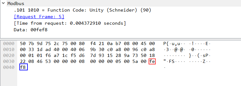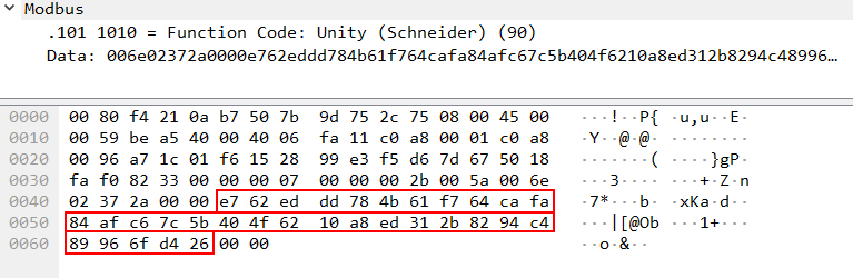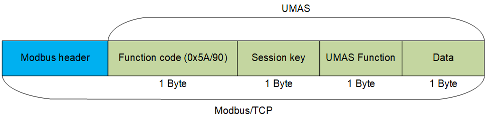Schneider Electric uses Function Code 90 (0x5A) to define that the value in the Data field is UMAS compliant.