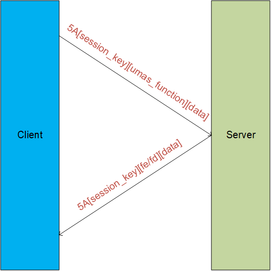 UMAS also inherits the Modbus client-server architecture. A structural diagram of the communication between the client and the server is provided below.
