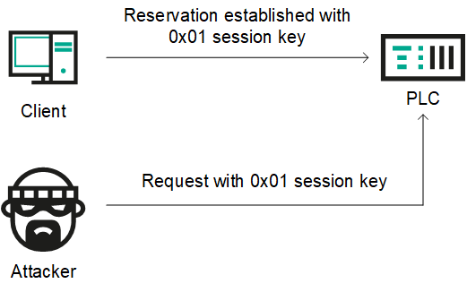 The fact that the PLC always sends the same response to the same nonce received from the client is an additional shortcoming of the mechanism, which enables an attacker to carry out a Replay attack using network traffic between a legitimate client (the operator) and the server (the PLC) captured earlier in the process of PLC reservation.