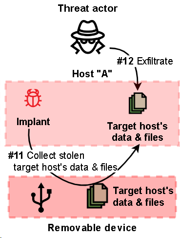 Stack of implants used to exfiltrate data from air-gapped networks via removable drives