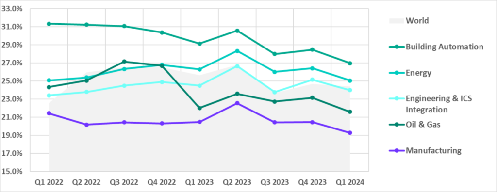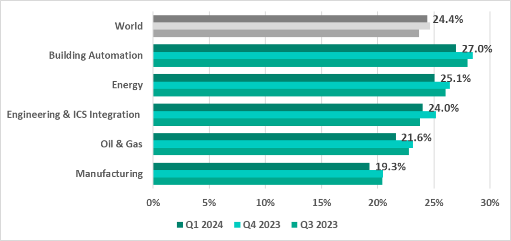 | Global percentage of attacked ICS computers | 24.7% | 24.4% | -0.3 pp |