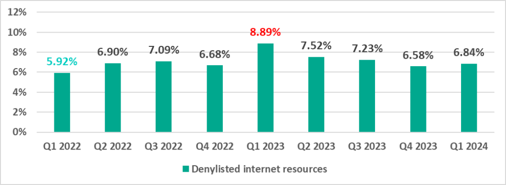 | Denylisted internet resources | 6.58% | 6.84% | 0.26 pp |
