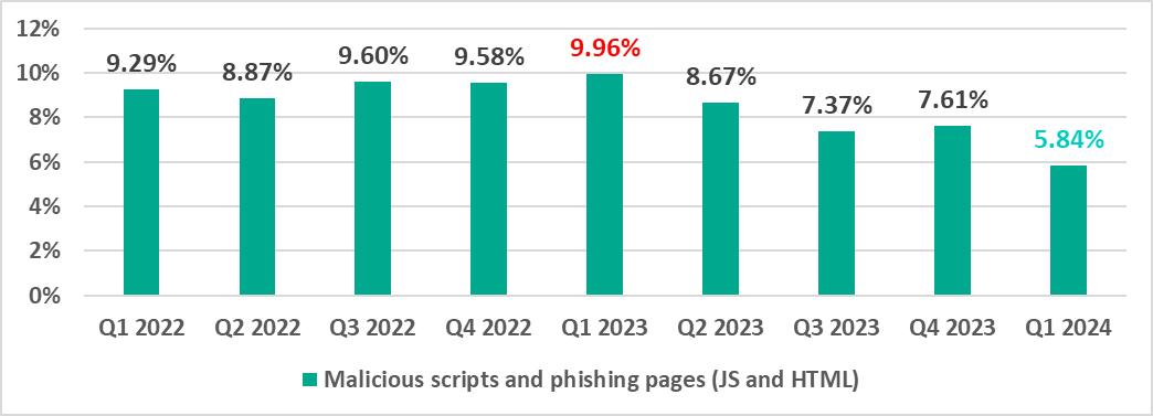 | Malicious scripts and phishing pages(JS and HTML) | 7.61% | 5.84% | -1.77 pp |