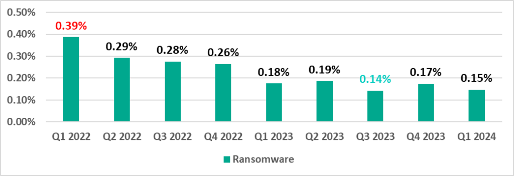 | Ransomware | 0.17% | 0.15% | -0.02 pp |