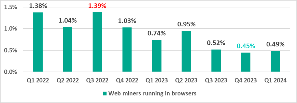 | Web miners running in browsers | 0.45% | 0.49% | 0.04 pp |