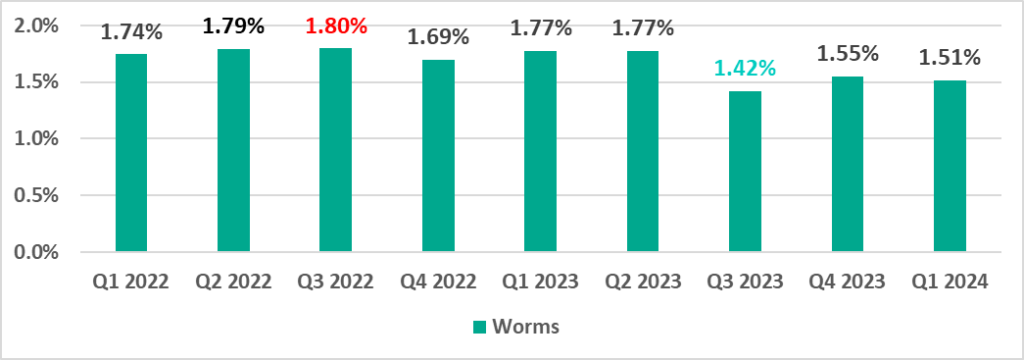 | Worms | 1.55% | 1.51% | -0.04 pp |