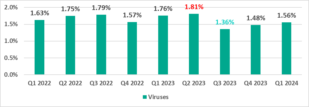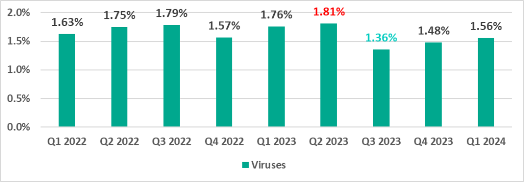 | Viruses | 1.48% | 1.56% | 0.08 pp |