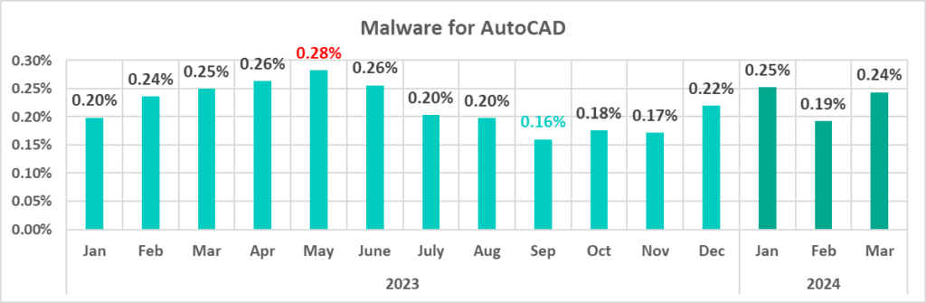 | Malware for AutoCAD | 0.36% | 0.41% | 0.05 pp |