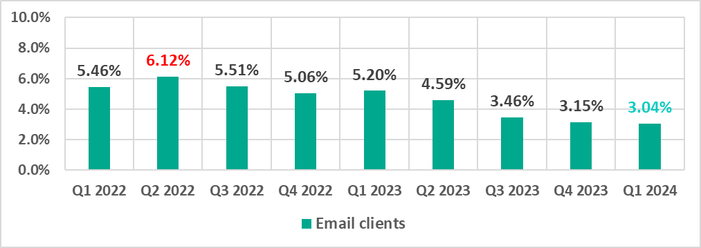 | Email clients | 3.15% | 3.04% | -0.11pp |