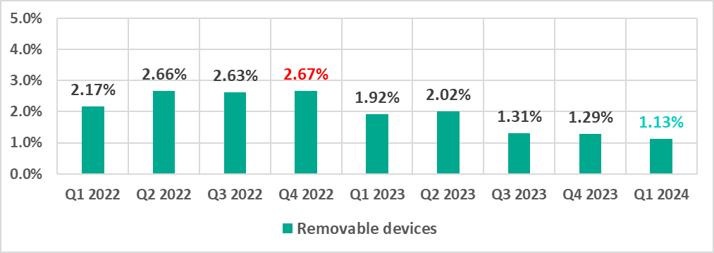| Removable media | 1.29% | 1.13% | -0.16pp |