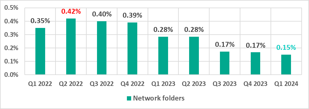 | Network folders | 0.17% | 0.15% | -0.02pp |