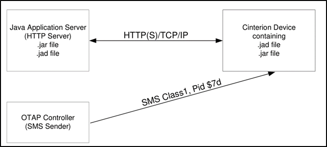 In the OTAP protocol, data is transmitted using SMS messages that have special values for the Class and PID fields (Figure 4).