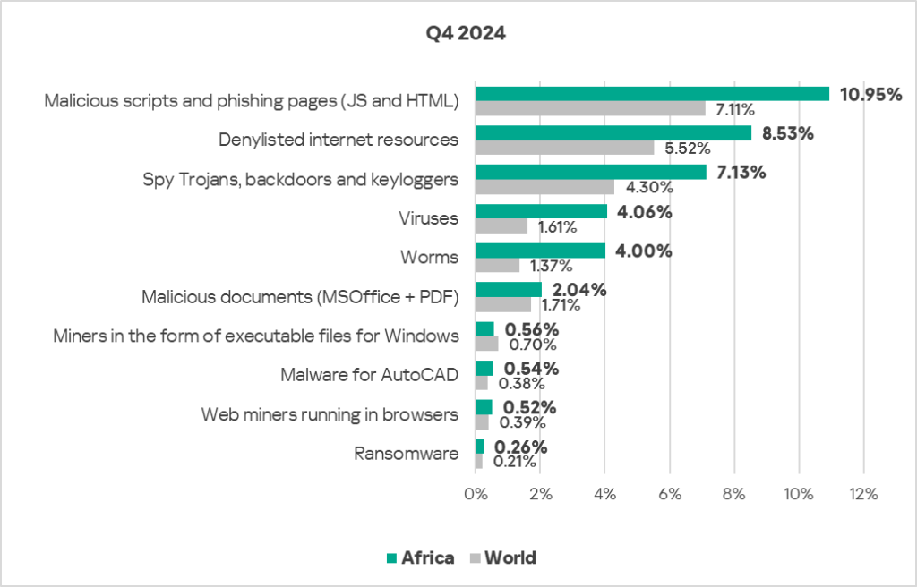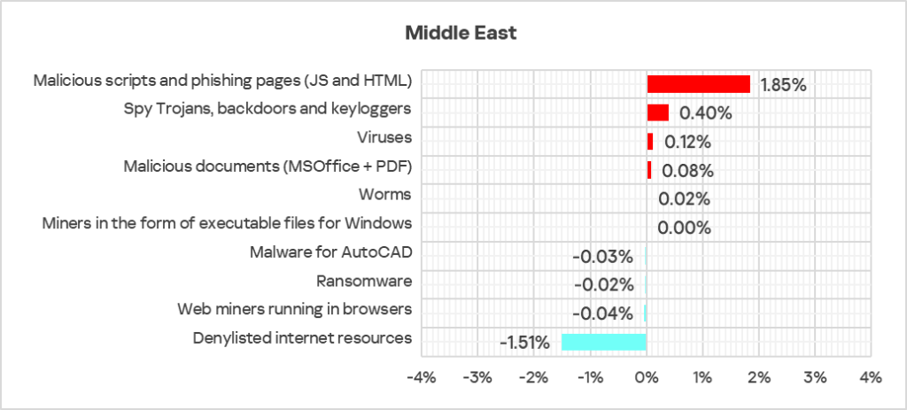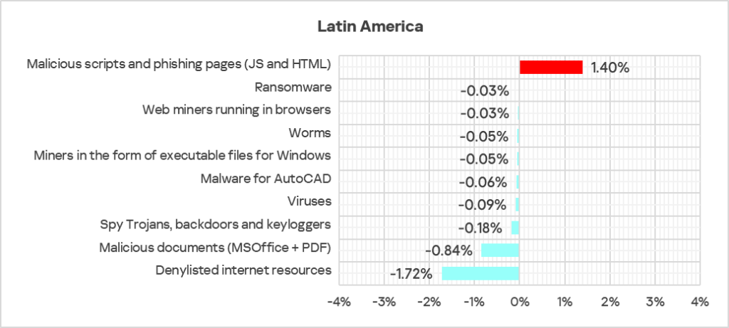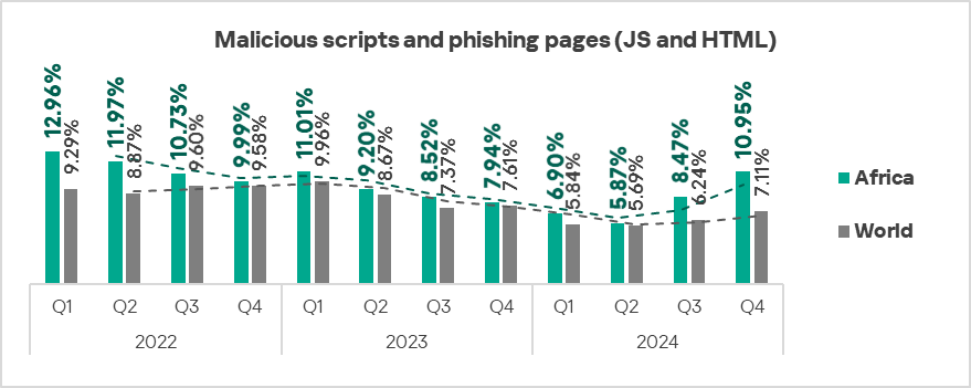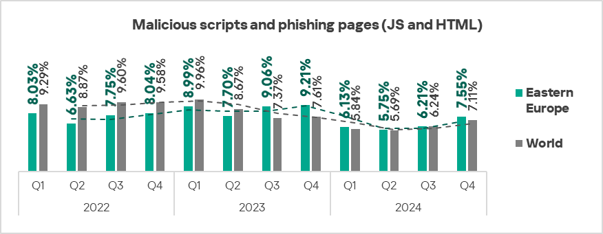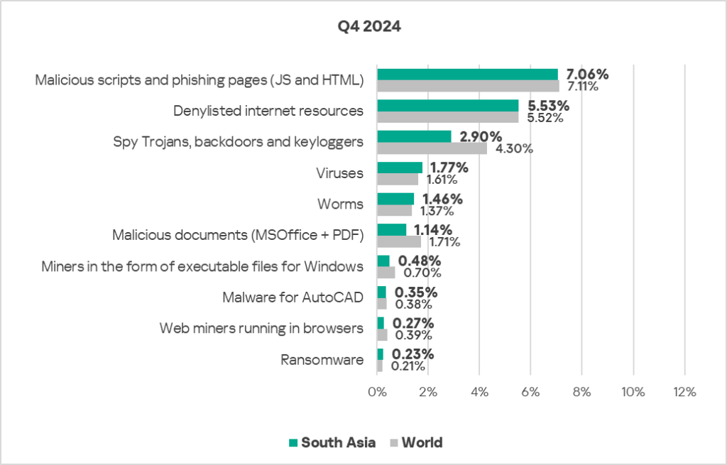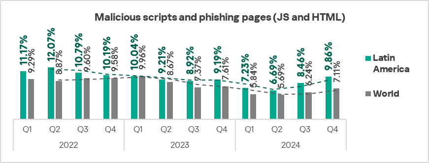 - The heatmap below illustrates changes in the rankings of threat categories in the region since the beginning of 2022. Malicious scripts and phishing pages moved to the top of the ranking in Q4 2024.