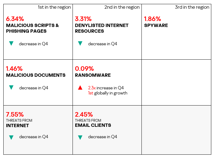 - In Q4 2024, the region showed a decrease in the percentage of ICS computers on which malicious objects were blocked.