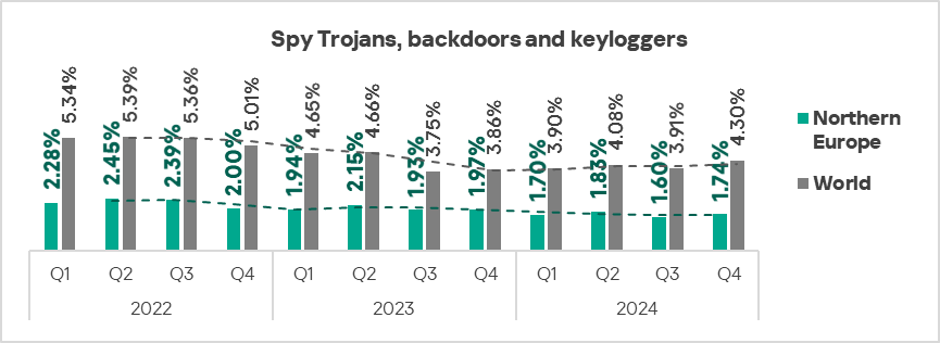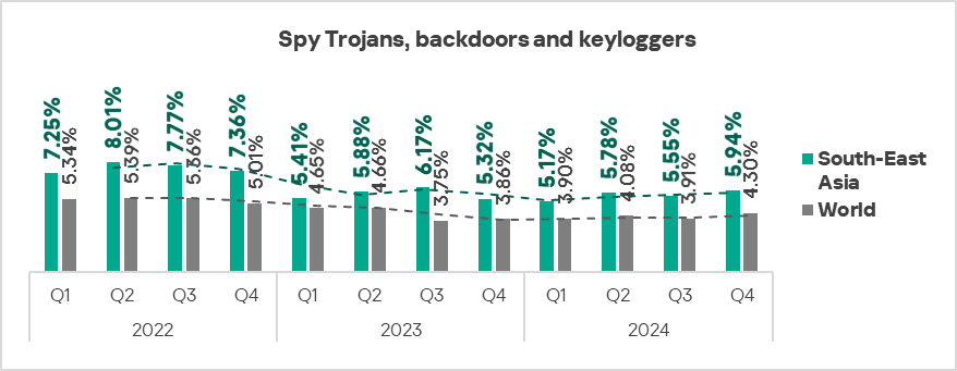 - Spyware: 1.5 times higher (surpassing Q3 2024 levels), ranked third by value among the regions.