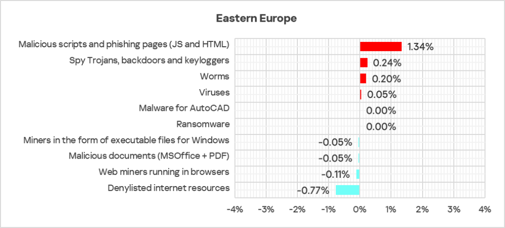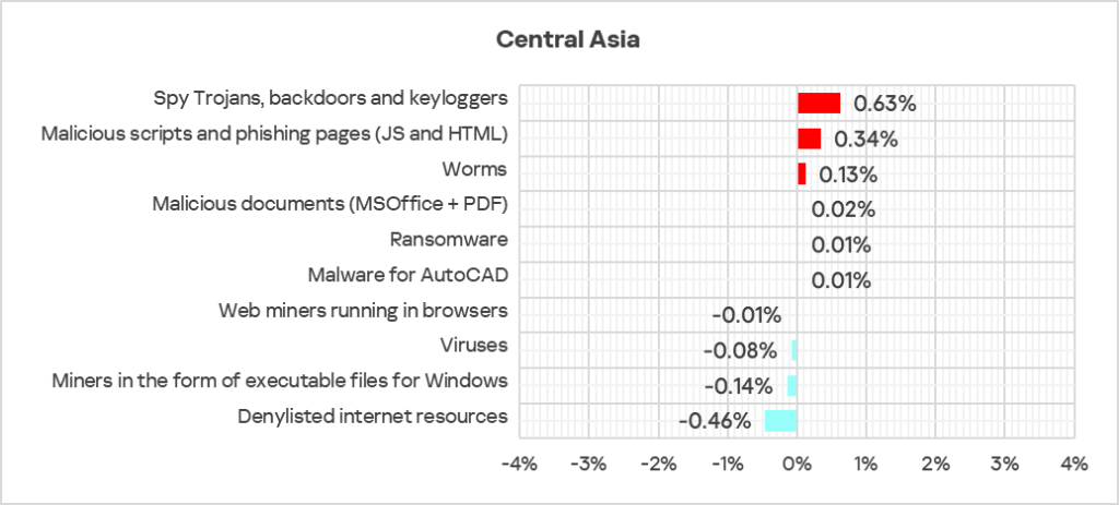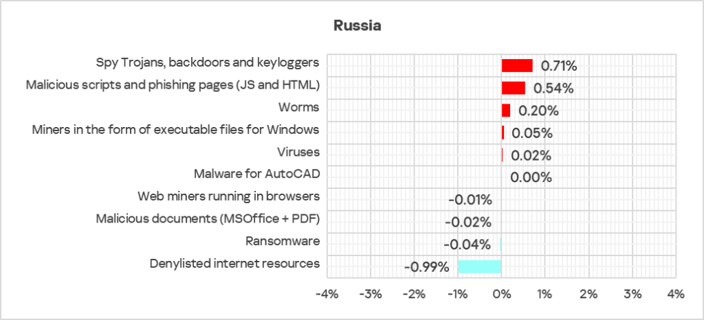- Spyware: by 1.3 times, ranked second globally in terms of growth.