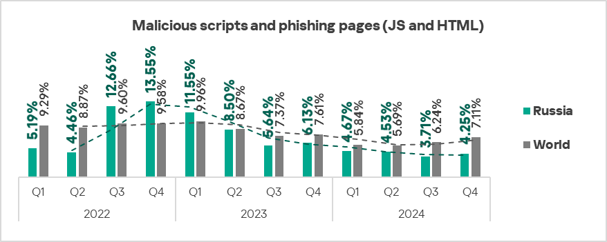 - Malicious scripts and phishing pages: by 1.2 times, ranked second globally in terms of growth.