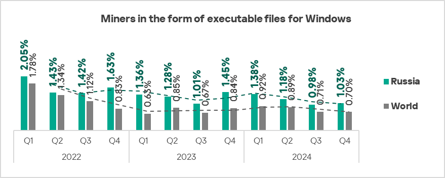 - Executable miners, by 1.1 times, in contrast to the average global trend, ranked second globally in terms of growth.