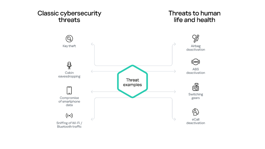 Modern vehicles are actively evolving into full-fledged gadgets on wheels. They offer users a wide range of options: some represent traditional functionality, now available in new formats, such as subscriptions for seat heating, while others provide lifestyle-related services, like purchasing theater or movie tickets. The array of intelligent systems and services designed to ensure road safety is also expanding — from now basic driver assistance systems such as electronic stability control (ESC), anti-lock braking system (ABS), and brake assist system (BAS), to a set of increasingly popular next-generation intelligent features like collision avoidance system (CAS), slippery road alert (SRA), the eCall emergency call system, and autonomous emergency braking (AEB), among others. All of these systems, intended to make driving more convenient and safe, are implemented using digital technologies, which expand the vehicle’s attack surface.