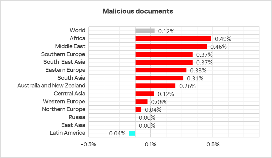 Regionally, the percentage of ICS computers on which malicious objects were blocked ranged from 11.2% in Northern Europe to 27.8% in Africa.