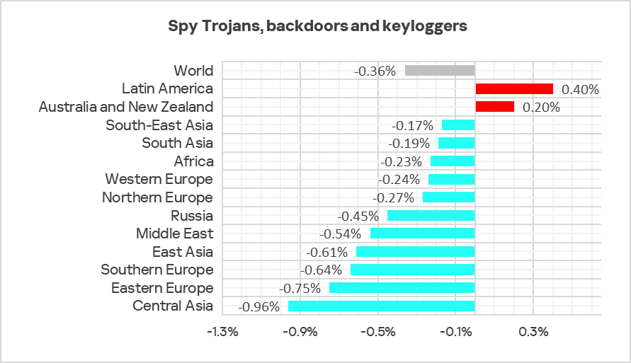 During the quarter, the percentage of ICS computers on which spyware was blocked increased in Latin America, and Australia and New Zealand.