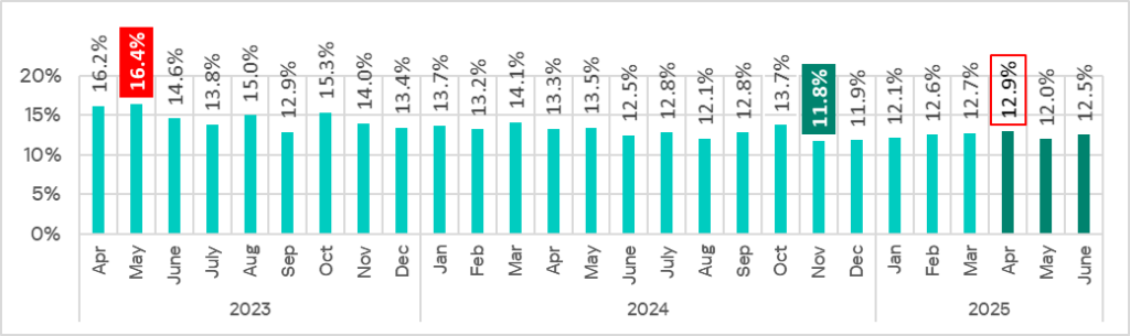 In May 2025, the monthly rate fell to its lowest point since April 2023.