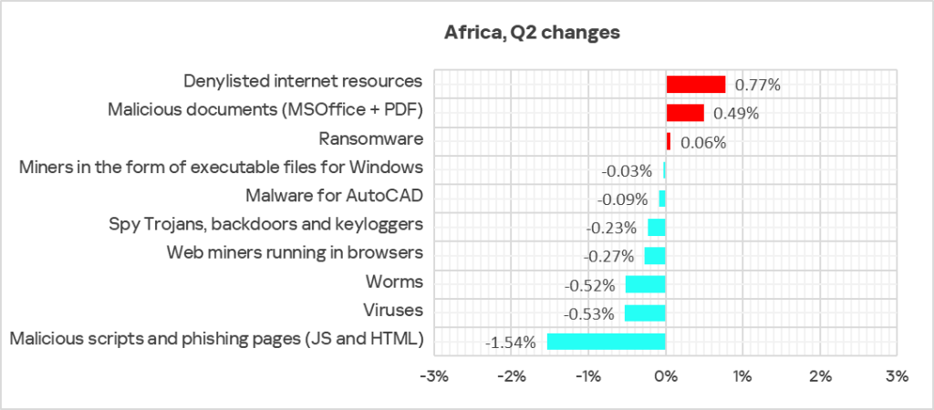 Ransomware indicators in Africa in Q2 are 2.2 times higher than the global average.