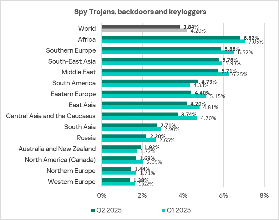 The rate of spyware detections in the region far exceeds the global average: it was 1.8 times higher in Q2 2025.