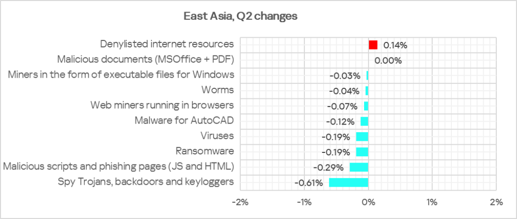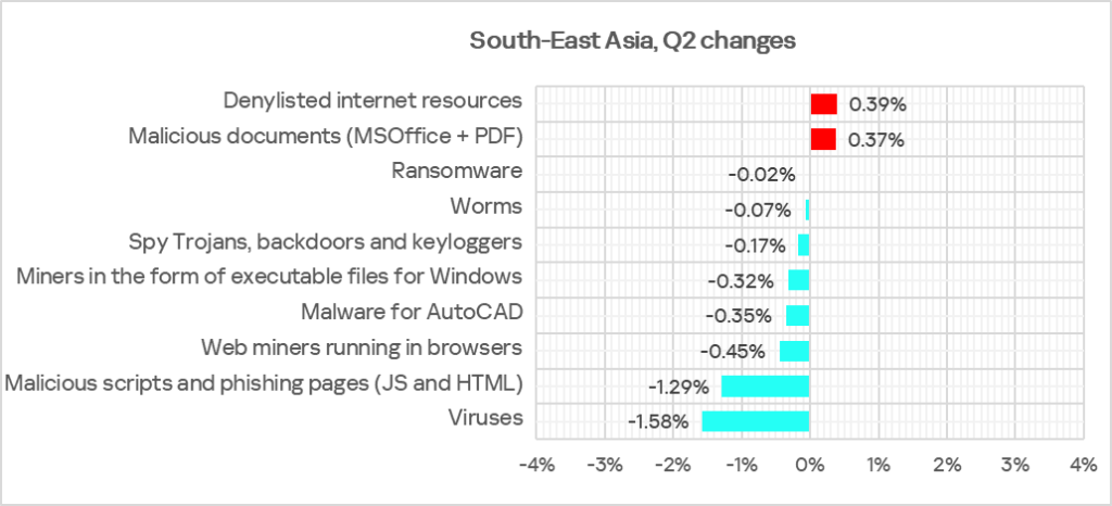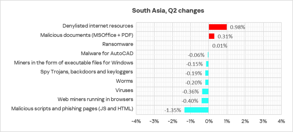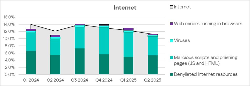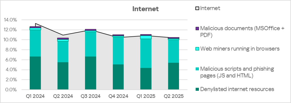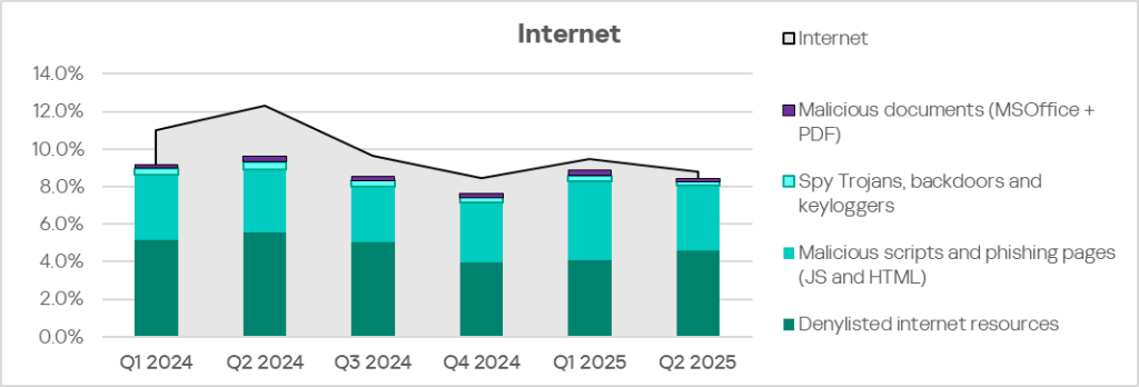 Compared to the previous quarter, the percentage increased only for two categories: denylisted internet resources and malicious documents.
