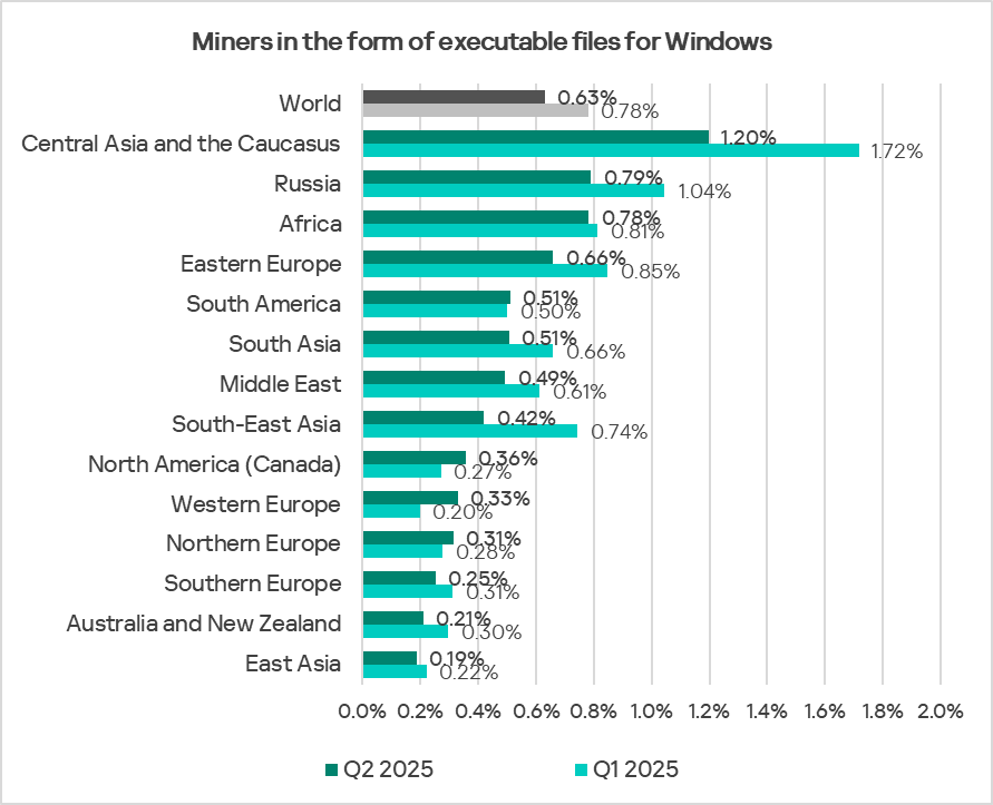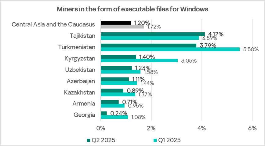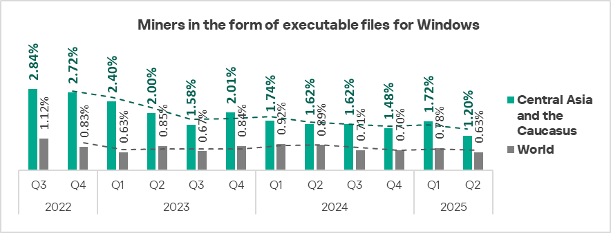 • Second in the region in terms of miners in the form of executable files for Windows.
