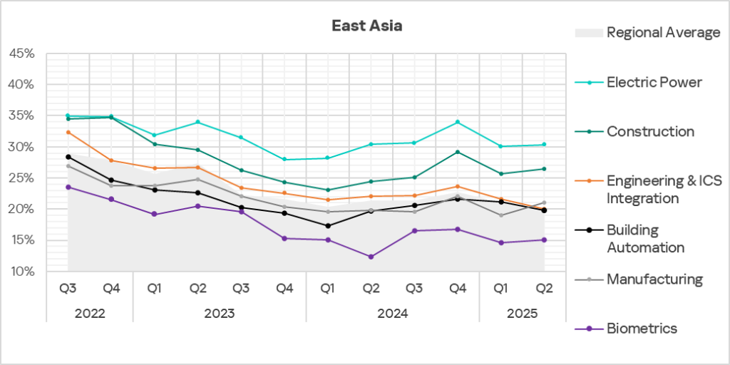 Threat landscape for industrial automation systems. Asia, Q2 2025