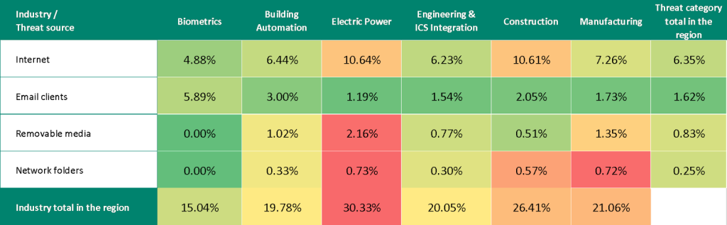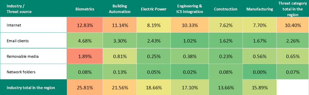 The region ranks first in terms of the percentage of ICS computers on which malicious objects were blocked in the building automation industry.