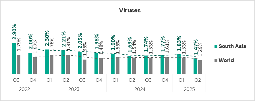The virus count in South Asia has been declining. In Q2 2025, it reached its lowest since Q3 2022.