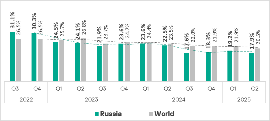 In Q2 2025, this figure dropped by 1.3 pp to 17.9%.